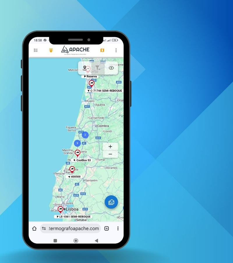 Associada ao termógrafo, a plataforma telemática Apache permite o acompanhamento remoto em tempo real, geração de relatórios detalhados e alertas automáticos, garantindo a integridade da carga e a conformidade com a cadeia de frio.